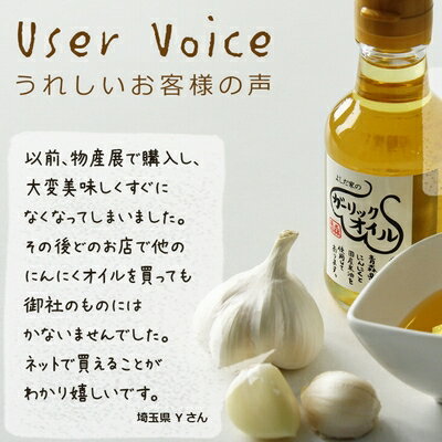 商品説明名称 ガーリックオイル(香味食用油)&七味にんにくセット内容量ガーリックオイル(香味食用油)140g七味にんにく80g保存方法直射日光・高温多湿を避け、冷暗所にて保存原材料 【ガーリックオイル】食用米油、青森県産にんにく【七味にんにく】唐辛子、陳皮、にんにく、黒ごま、白ごま、青サ、麻の実、ケシの実製造者にんにくのよしだ家(青森県三戸郡三戸町斗内字菅田110-2)使用方法【ガーリックオイル】ガーリックトースト、パスタ、サラダなどにどうぞ! 【七味にんにく】豚汁、もつ鍋、うどん、そばなどにどうぞ! ※ふりかけではございません。
